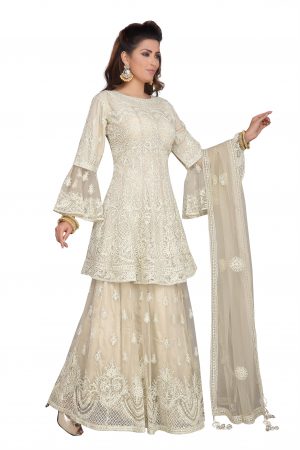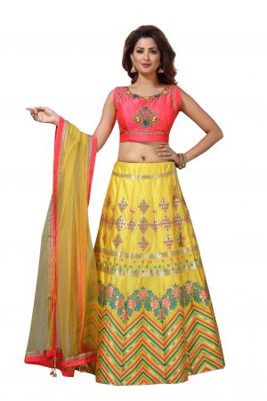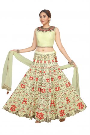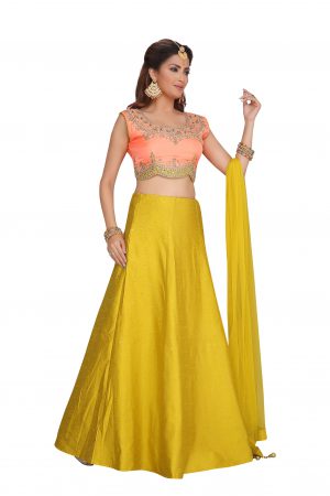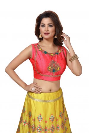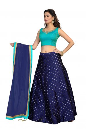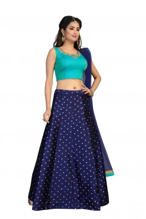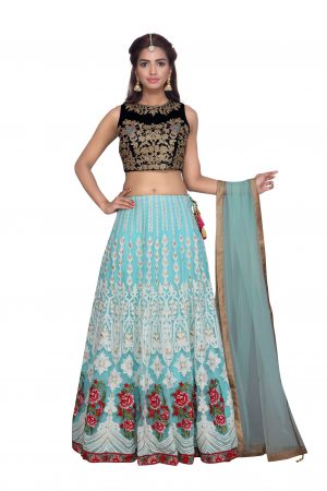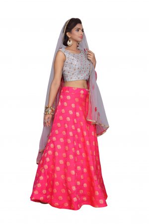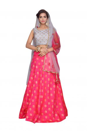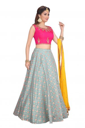 Rani Pink Floral Lehenga with Long Blue Blouse