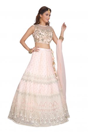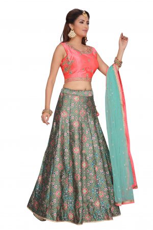 Pink Banarsee Lehenga with Light Blue Heavy Blouse