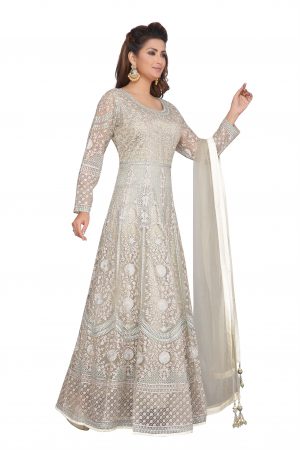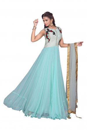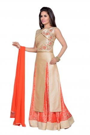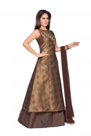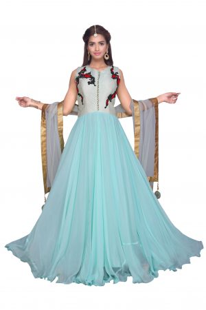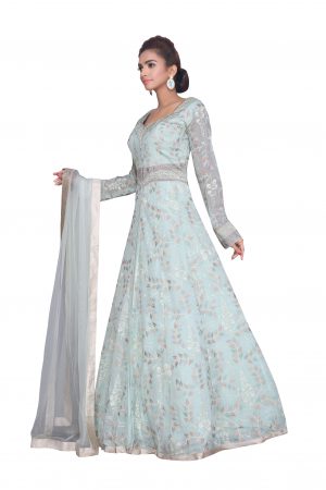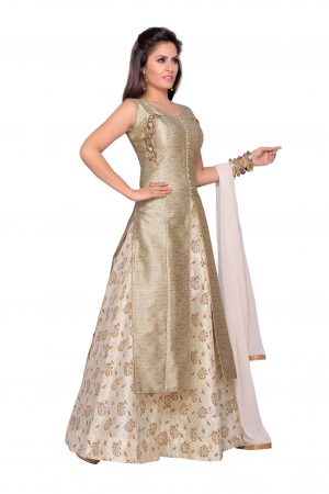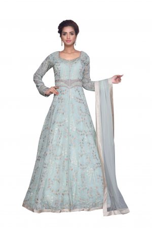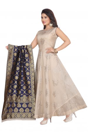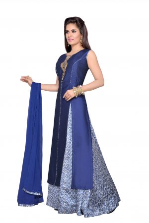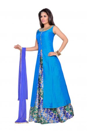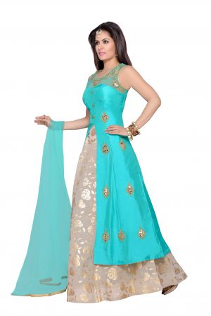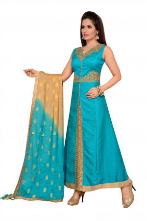 Rama Blue Raw Silk Abaya with Gold Zari Work with Blue & Gold Shaded Dupatta
